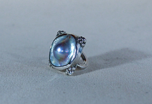 Silver Ring Tahitian Pearl Unique 2009 1.5" x 1.5" 1.5oz 950 Silver Sold ID. 708