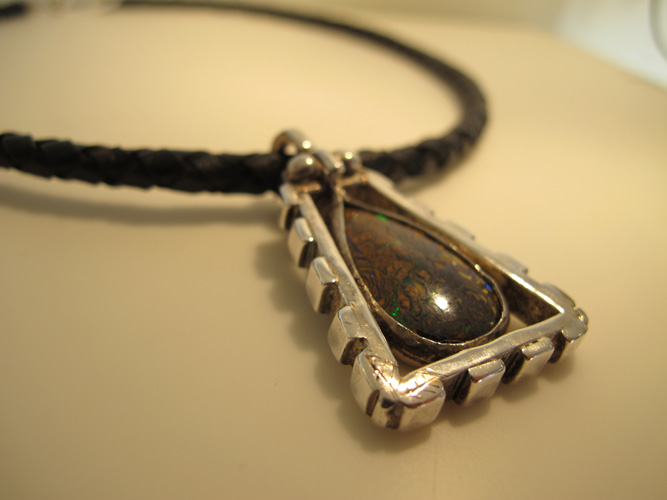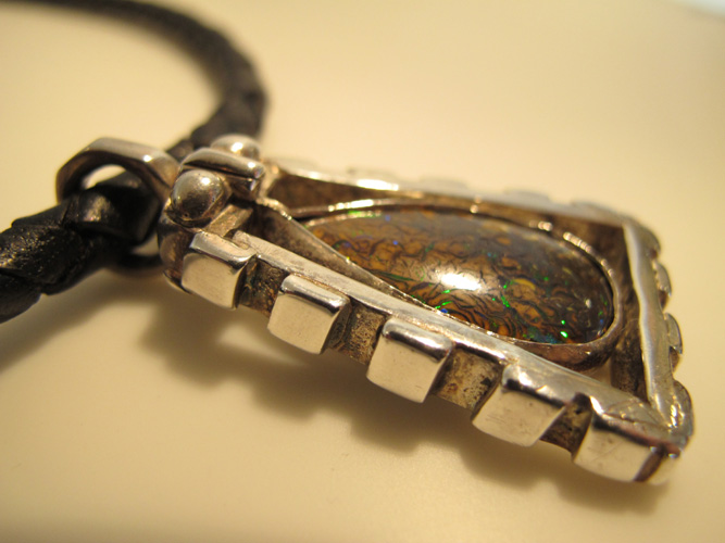 Silver Pendant Australian Koroit Opal Unique 2009 1.25" x 5/8" Double Face Opal 950 Silver - Leather and Silver Necklace Available ID. 711